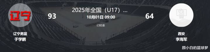 北京时间10月1日,全国U17篮球联赛,辽宁队93-64大胜西安队,这场比赛一场一边倒的比赛,首节辽宁打出30-10的攻防浪潮,实际上第一节打完后比赛就失去了悬念。在鞍山赛区辽宁队拿到了4胜1负的傲人战绩。